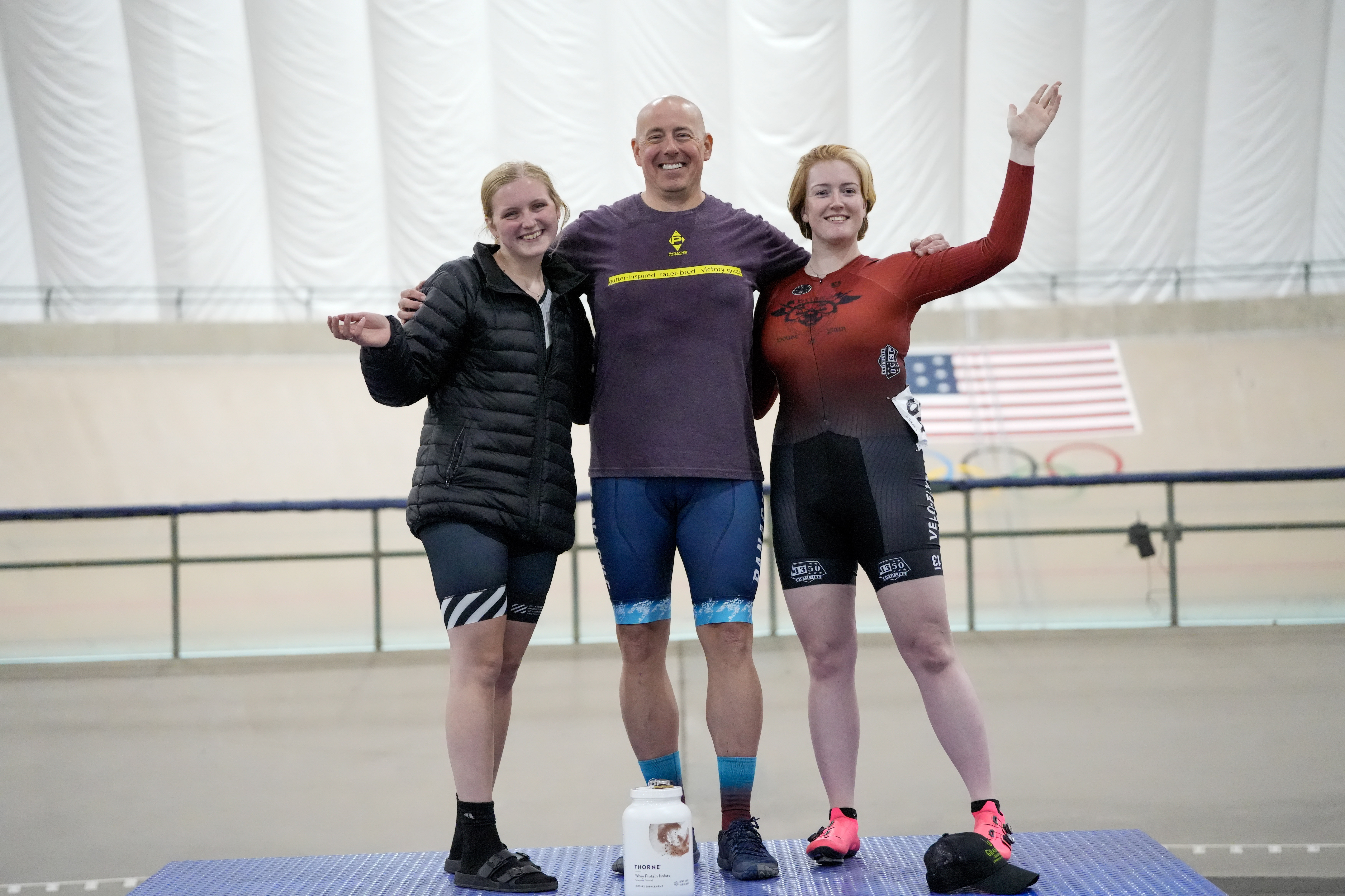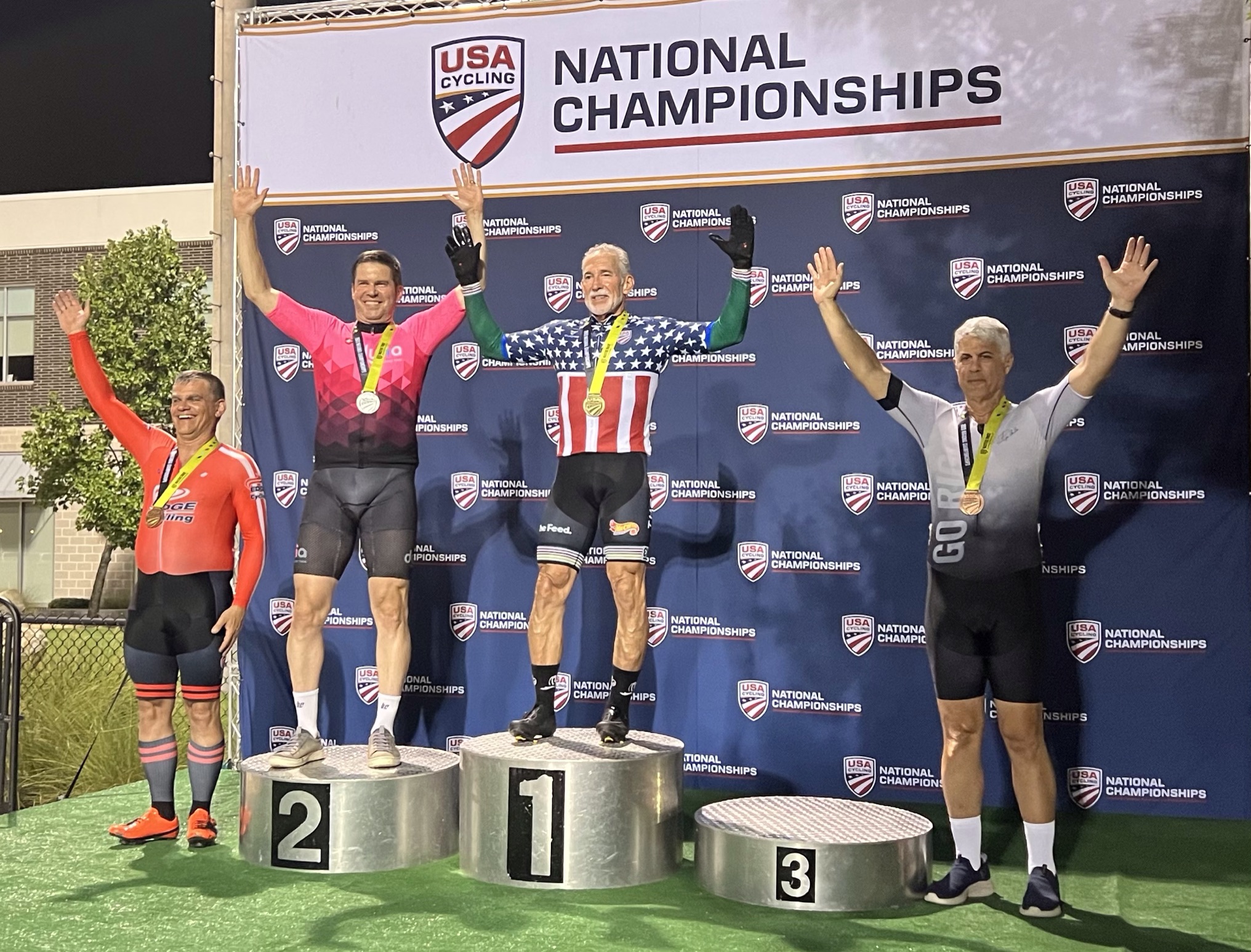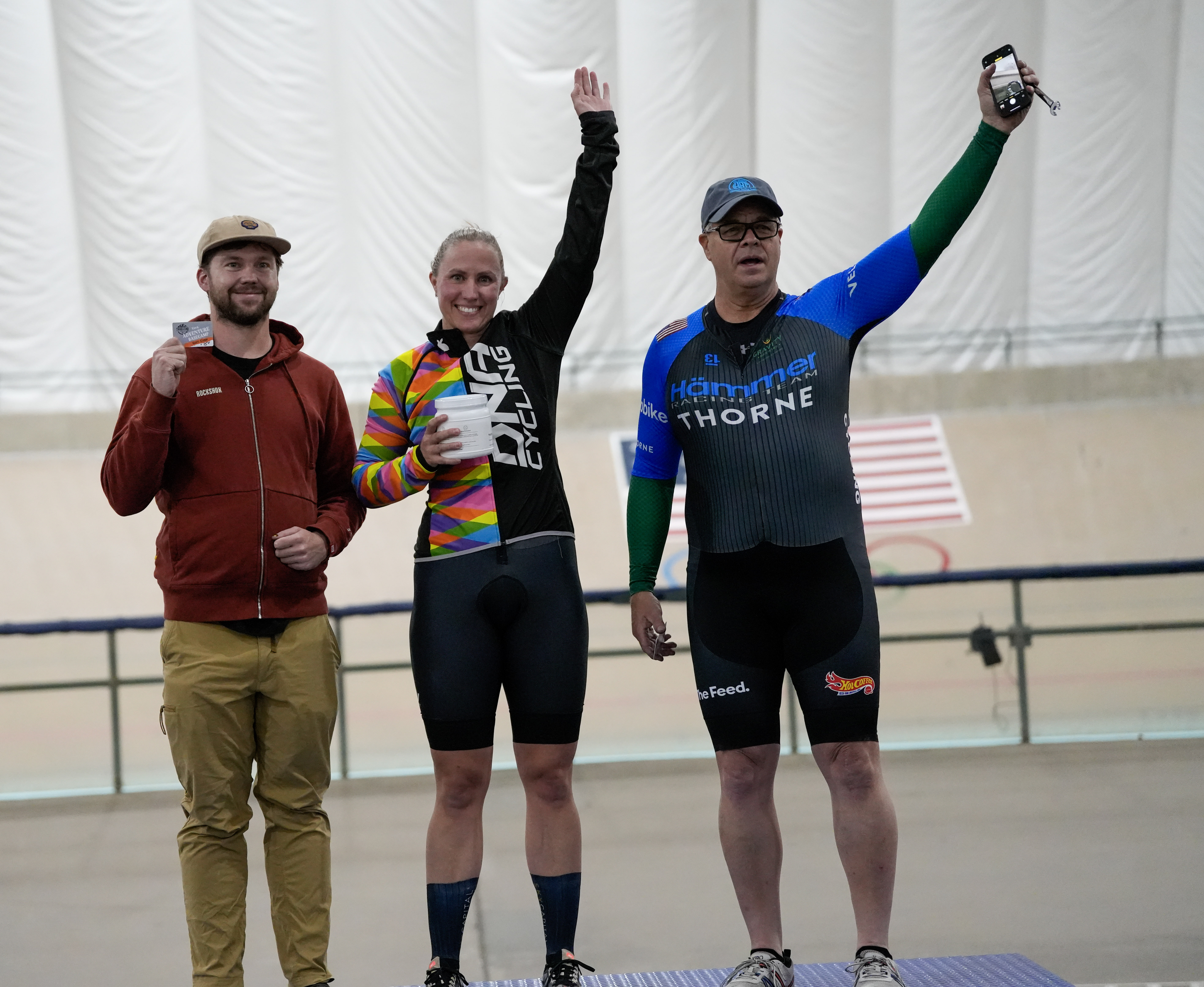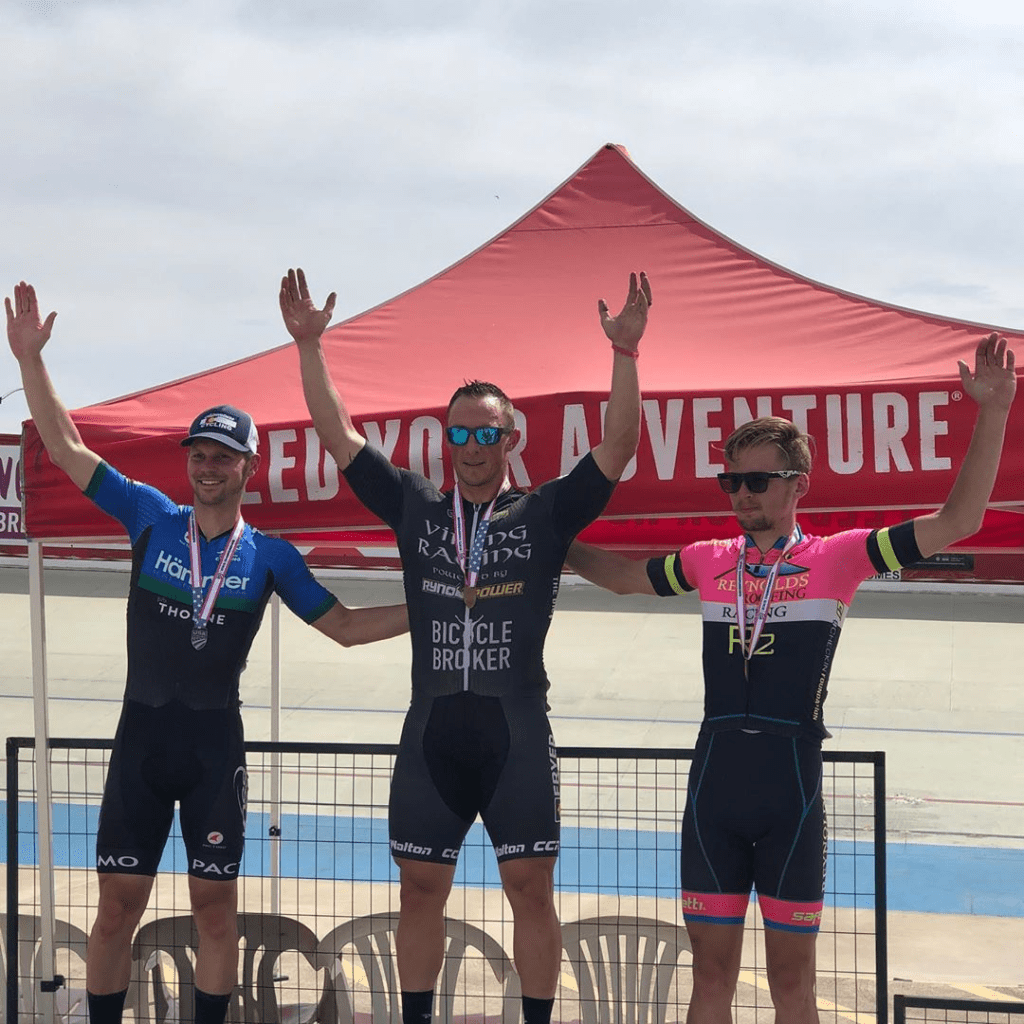 Glen Griese on the podium at Jerry Baker Velodrome