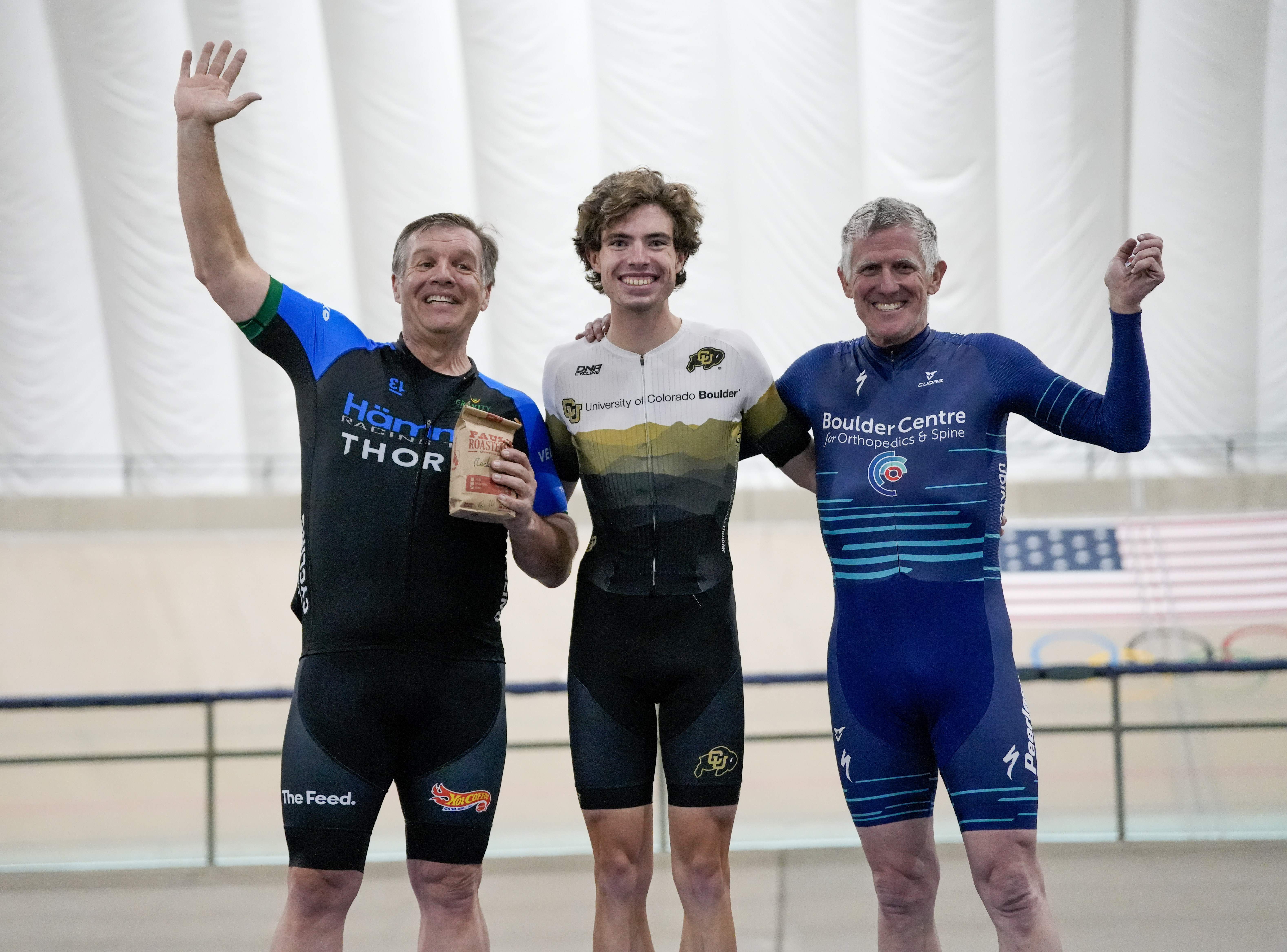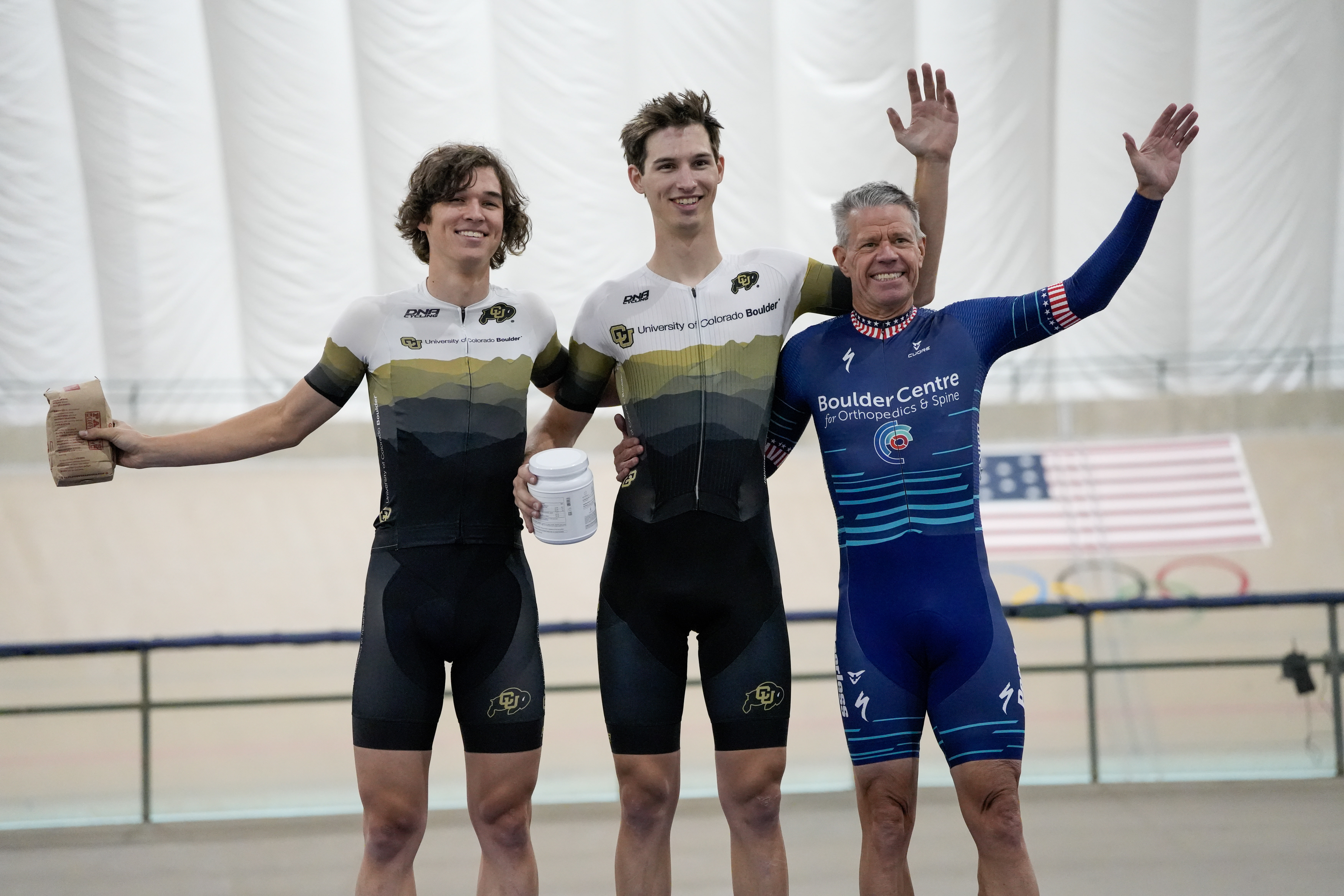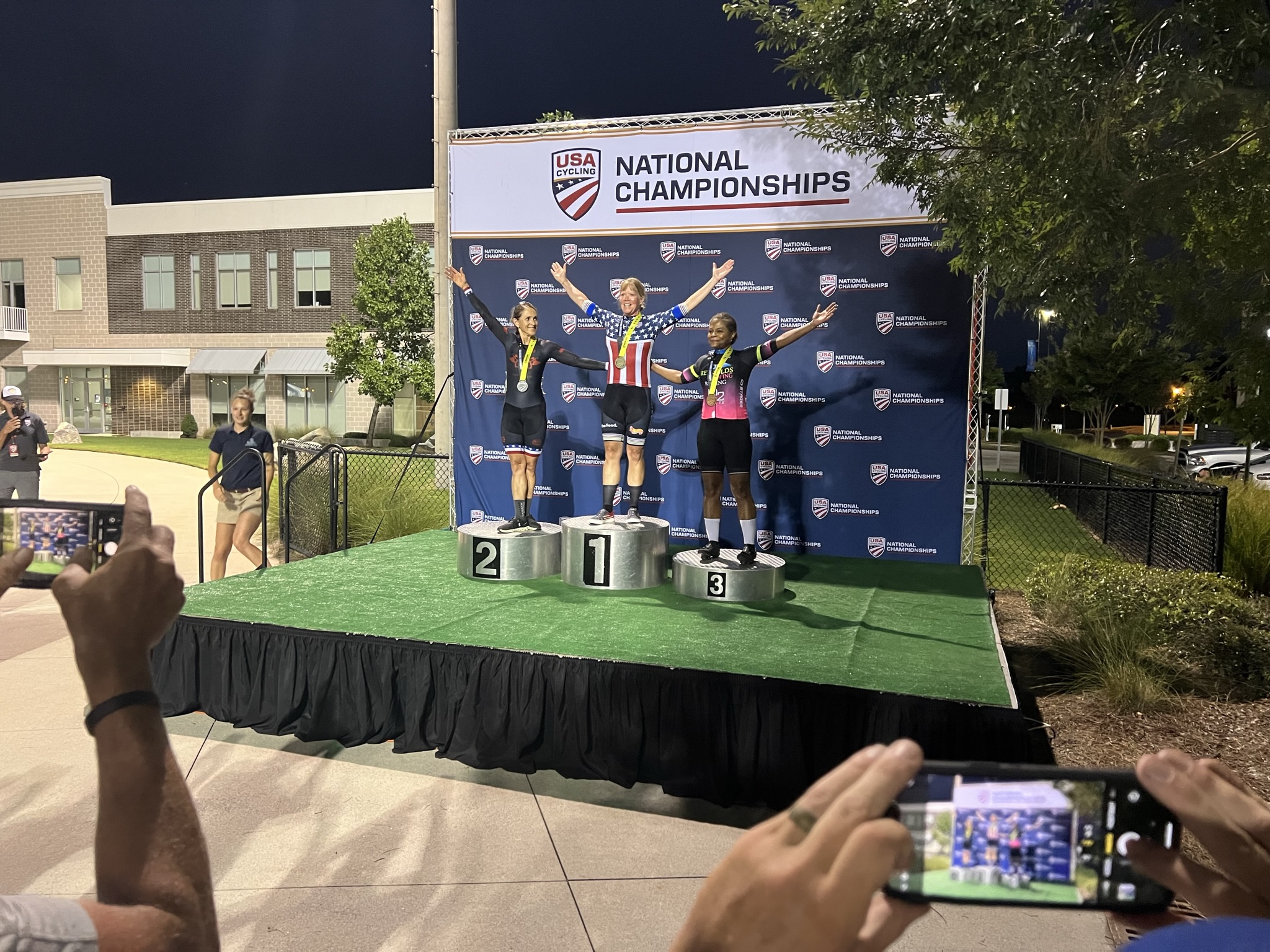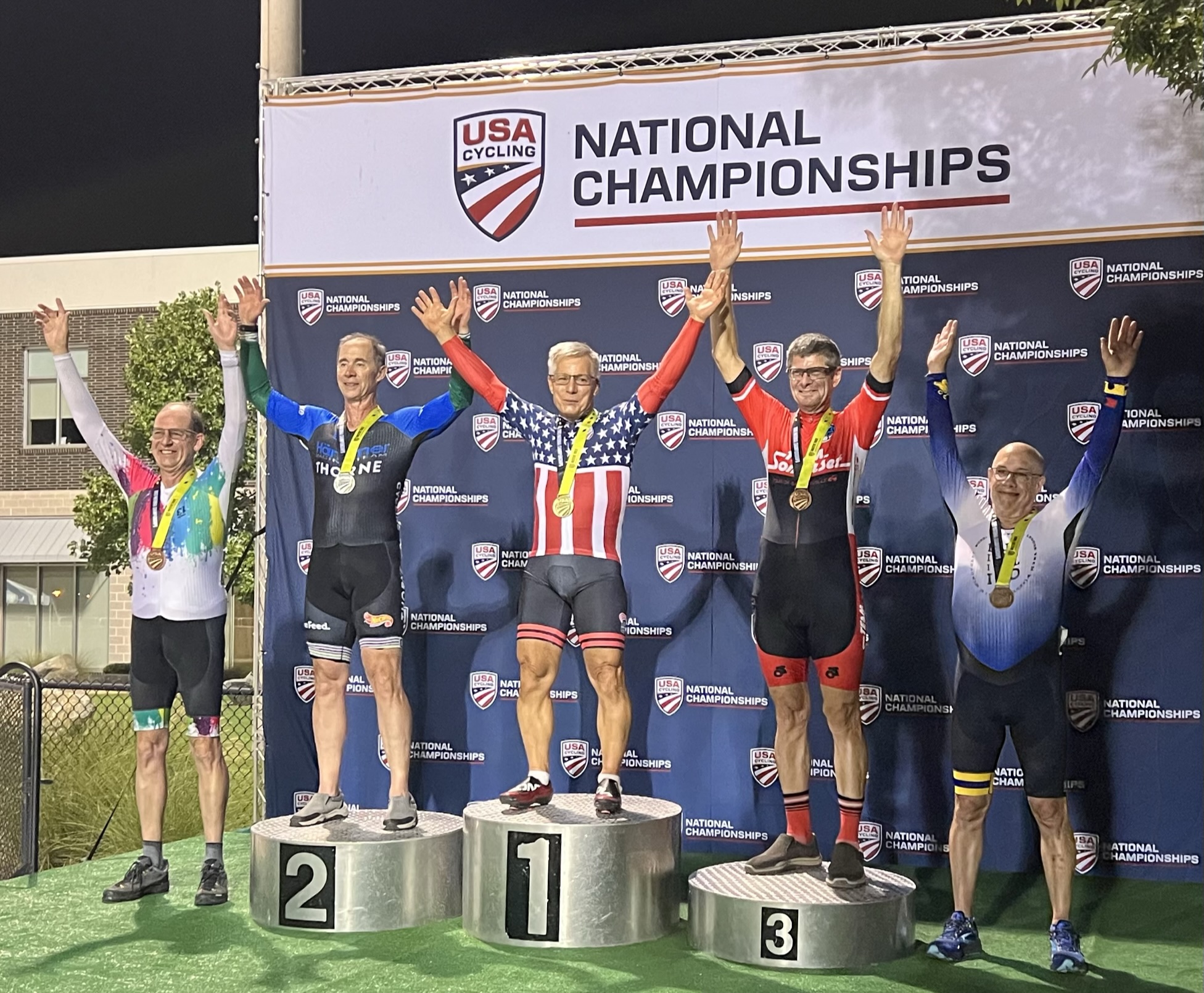 Glen Griese on the podium at Jerry Baker Velodrome