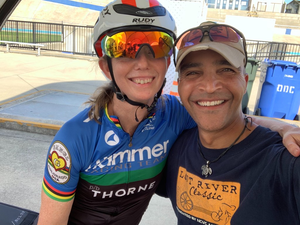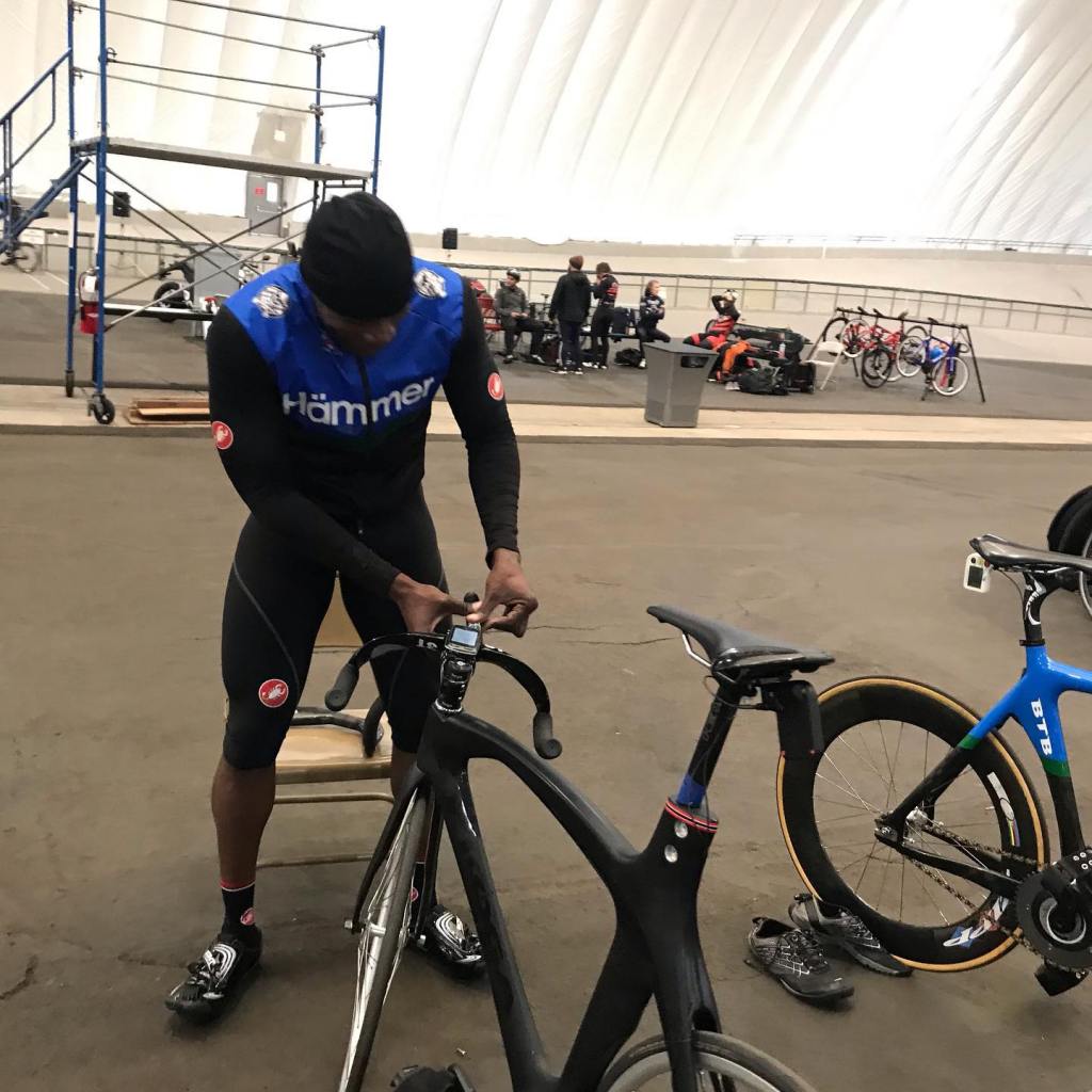 When Shannon brings the bike gear “IN” — for training at the Velo Sport Center Velodrome…He brings it in all the way.