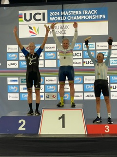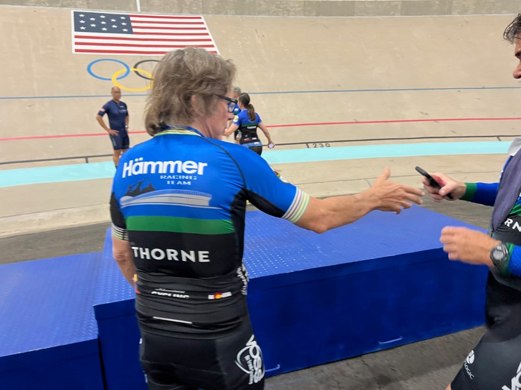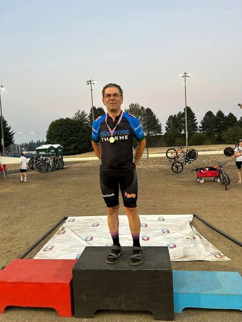 Northwest Regional Track Championships(WA, OR, ID) last weekend. Competed in three events, Scratch, 2K and Points. I won the 2K with a personal best of 3:07 in the 2K, my second 2K I have done. In the scratch and points race the field was a 50+ combined and I was champ of the 70-74.